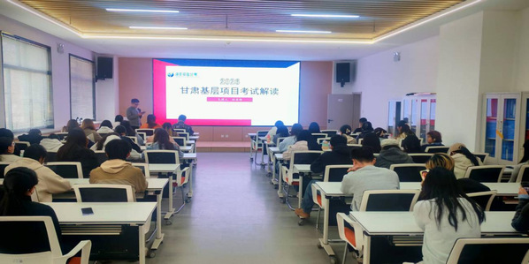 讲座中,主讲教师围绕2026年度甘肃省三支一扶、特岗教师、大学生志愿服务西部计划等基层项目,全面梳理考情特点与备考重点,针对毕业生普遍关注的招募条件、服务内容、选拔流程、政策保障等核心问题进行了细致解读。通过系统讲解,帮助同学们清晰把握各项目的报考要求和时间节点,为科学备考提供了有力指导。